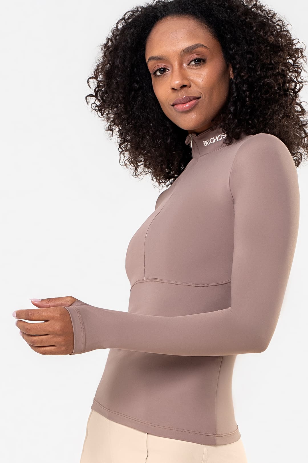 Blusa de qualidade Com design minimalista e elegante, esta peça na cor castanho foi criada para quem busca unir estilo, conforto e performance em todos os momentos. Confeccionada em tecido de alta qualidade — 90% Poliamida e 10% Elastano — entrega toque suave, elasticidade na medida certa e caimento impecável ao corpo.