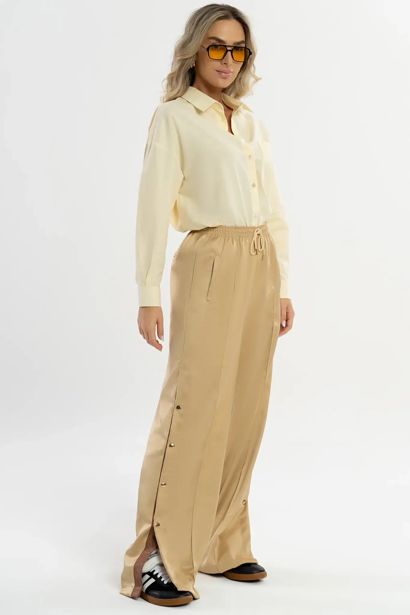 A Calça Dália é a expressão máxima de sofisticação e elegância, inspirada pela flor dália, conhecida por sua beleza exuberante e complexa. Feita em tecido acetinado de extrema qualidade na cor marfim acetinado, uma tonalidade clássica e elegante, que adiciona um toque refinado e atemporal à peça.
