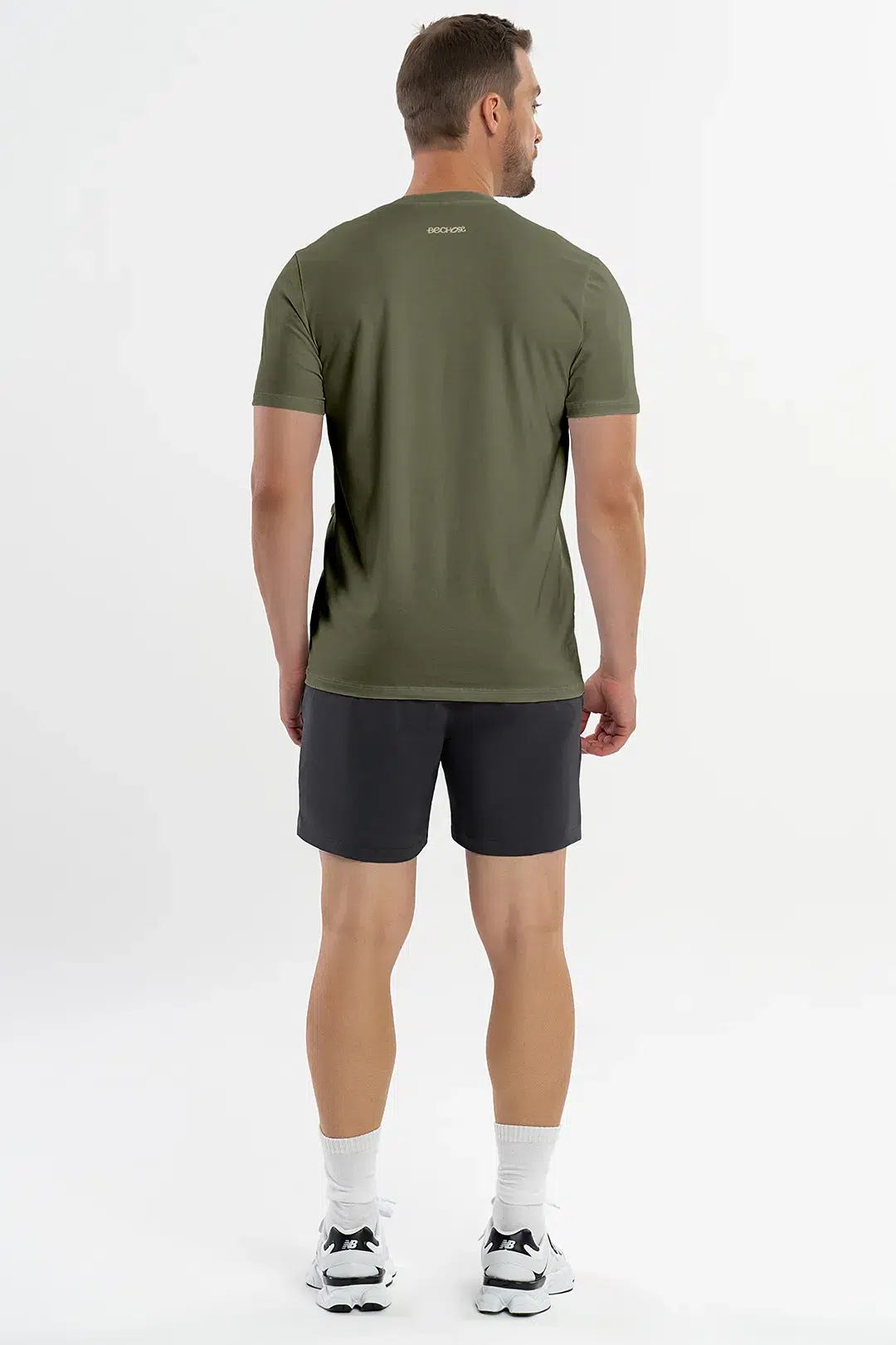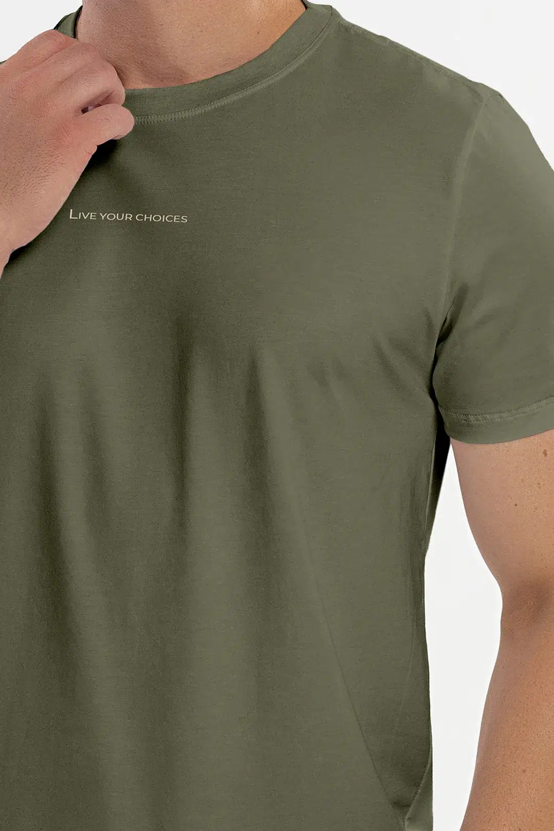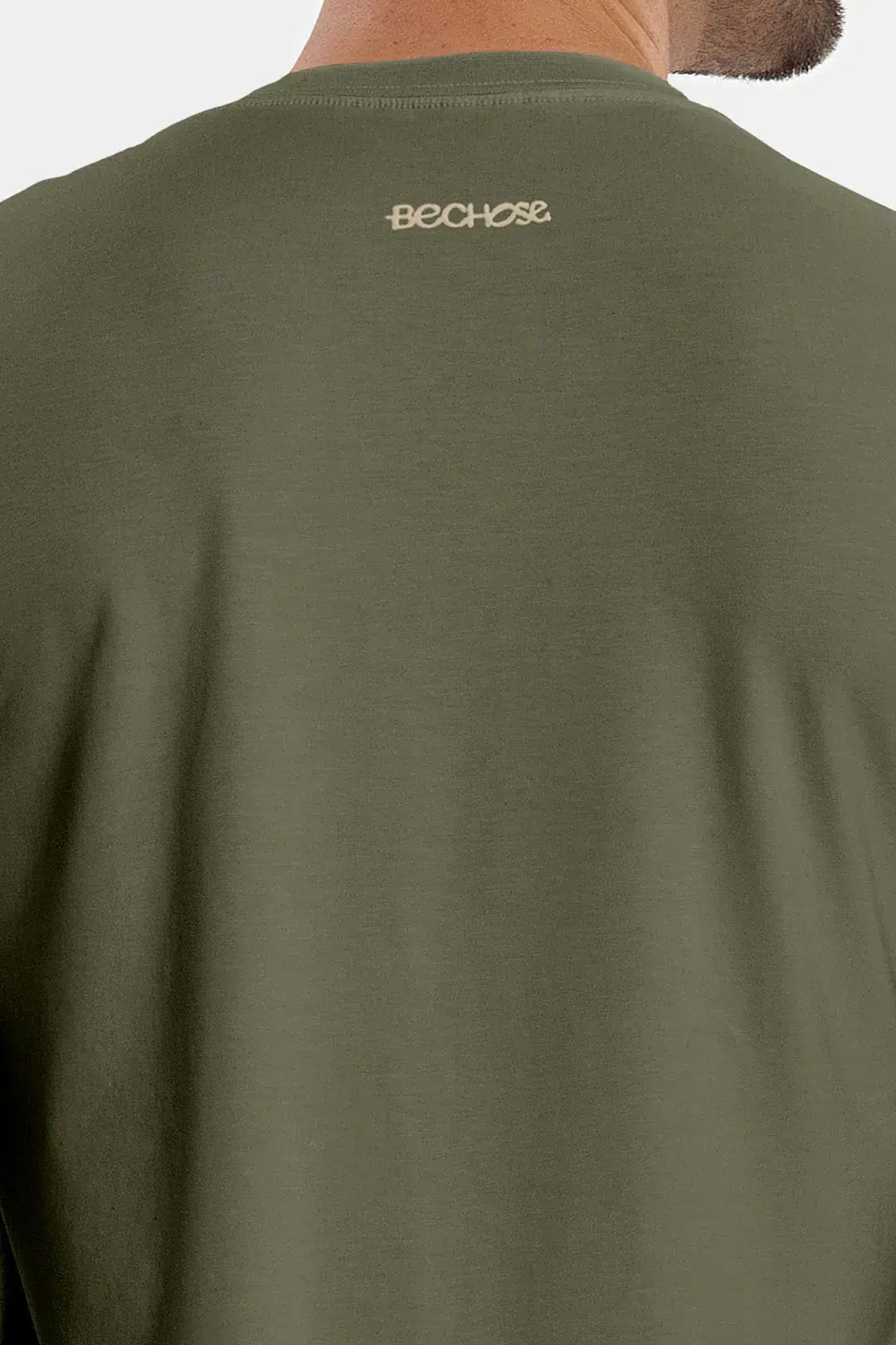 Camiseta masculina em algodão Pima, cor Verde Croco, com detalhe em silicone. Conforto e estilo para todas as ocasiões. 🐝