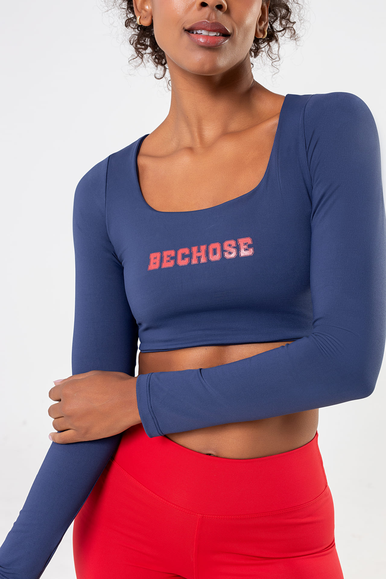 O Cropped College Azul traz a vibração esportiva das arquibancadas com um toque fashion. Em tom azul intenso, transmite atitude e estilo. Feito em tecido duplo, oferece sustentação firme e toque macio, com entrada para bojo e mangas longas que equilibram conforto e sofisticação. Ideal para treinos ou composições modernas com pegada college. 🐝