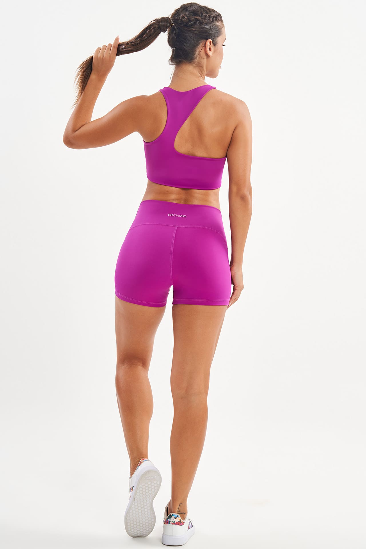 A peça conta ainda com costura inteligente, evitando marcas indesejadas e garantindo uma silhueta suave. A tecnologia Grip Fit, exclusiva da Bechose, mantém o shorts no lugar durante os treinos, oferecendo mais estabilidade e segurança.