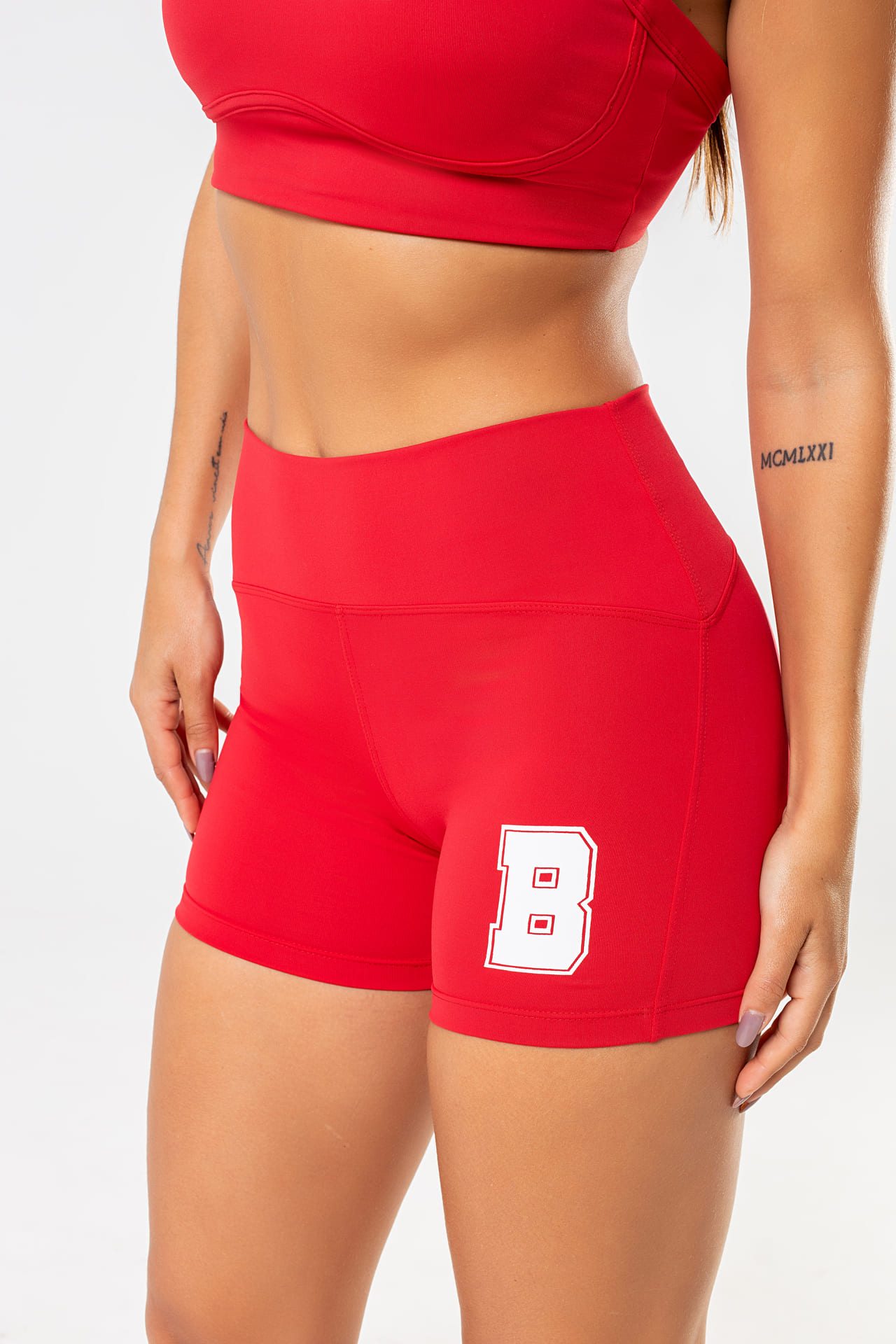 combina a força da flor de lótus com a energia vibrante dos uniformes universitários das cheerleaders dos EUA. Com sua tonalidade vermelha intensa e apaixonante, ele evoca confiança, atitude e espírito esportivo — um shorts de qualidade perfeito para quem quer unir estilo atlético com um toque feminino e ousado.