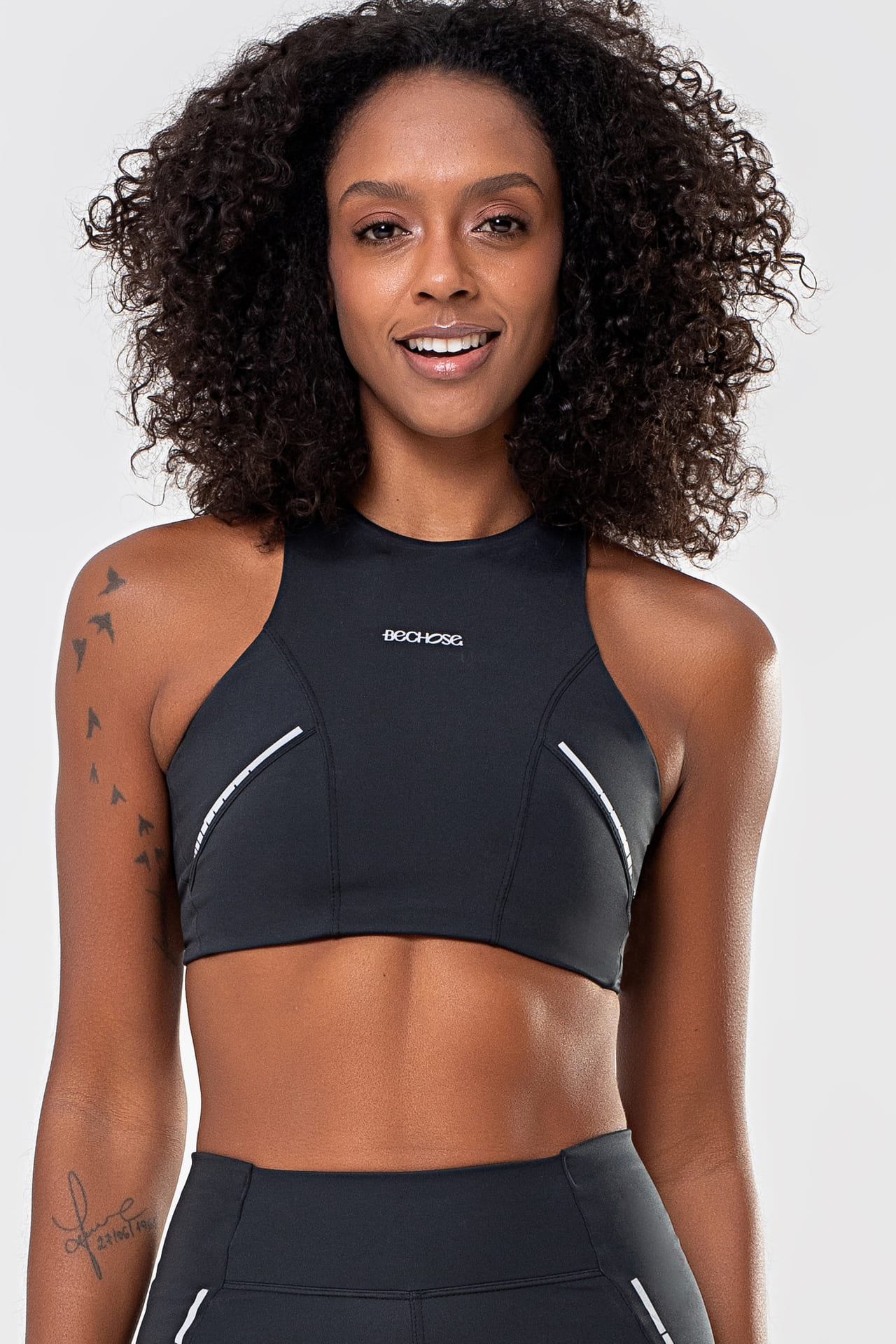 Feito para quem transforma o momento da corrida em um ritual de autocuidado, o Top Hibisco Preto traduz potência e suavidade em cada detalhe. 🐝